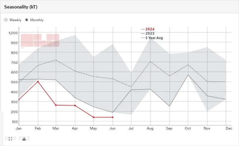 However, DBX believes the proposed coal restrictions will have a limited impact on Israel's energy supply. The country can easily replace Colombian coal with imports from Russia and South Africa. Russian coal, in particular, offers a shorter and more cost-effective shipping route, and it trades at a discount compared to other origins due to the US sanctions.